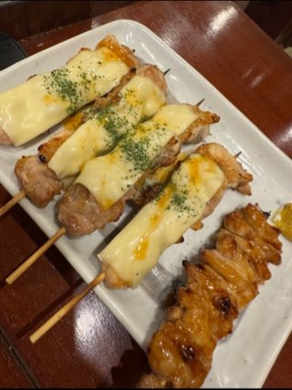 焼き鳥を食べてます。