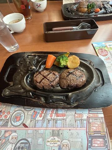 ハンバーグ200g牛100パーセントにしては値段も良心的‼️