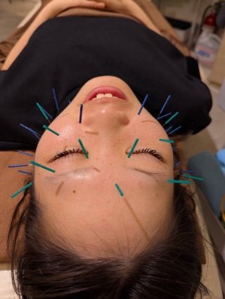 美容鍼こんな感じで針まみれ笑笑笑笑