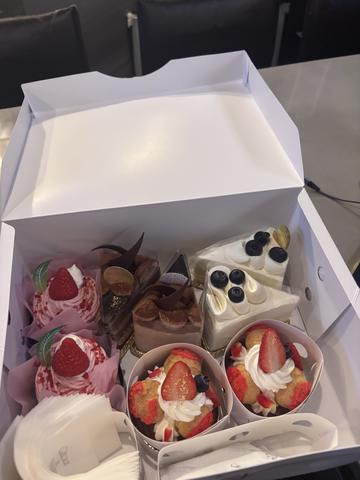 お客さんからこの前、私とあみさんのお誕生日祝いでケーキを買ってきて頂いて🎂