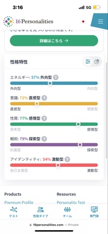 上から順に「E or I」「N or S」「T or F」「J or P」「A or T」の比率です⚖️